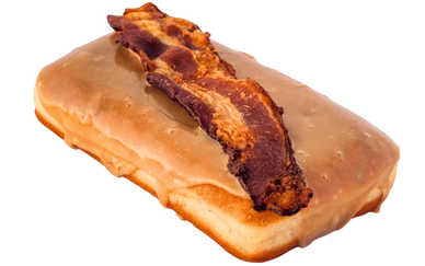 Soft pillow maple bar topped with a generous strip of bacon